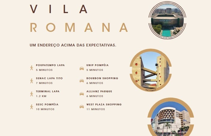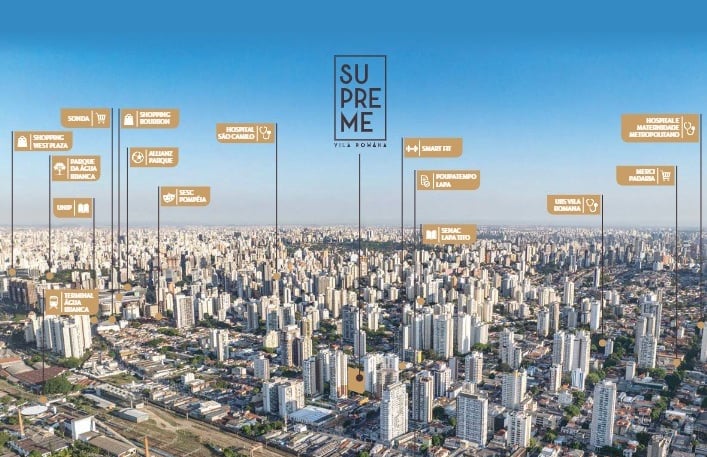 A região da Vila Romana e Pompeia oferece uma infraestrutura completa para quem busca praticidade e qualidade de vida. Próxima ao Allianz Parque, ao Sesc Pompeia e ao Shopping Bourbon, combina lazer, cultura e conveniência no dia a dia.